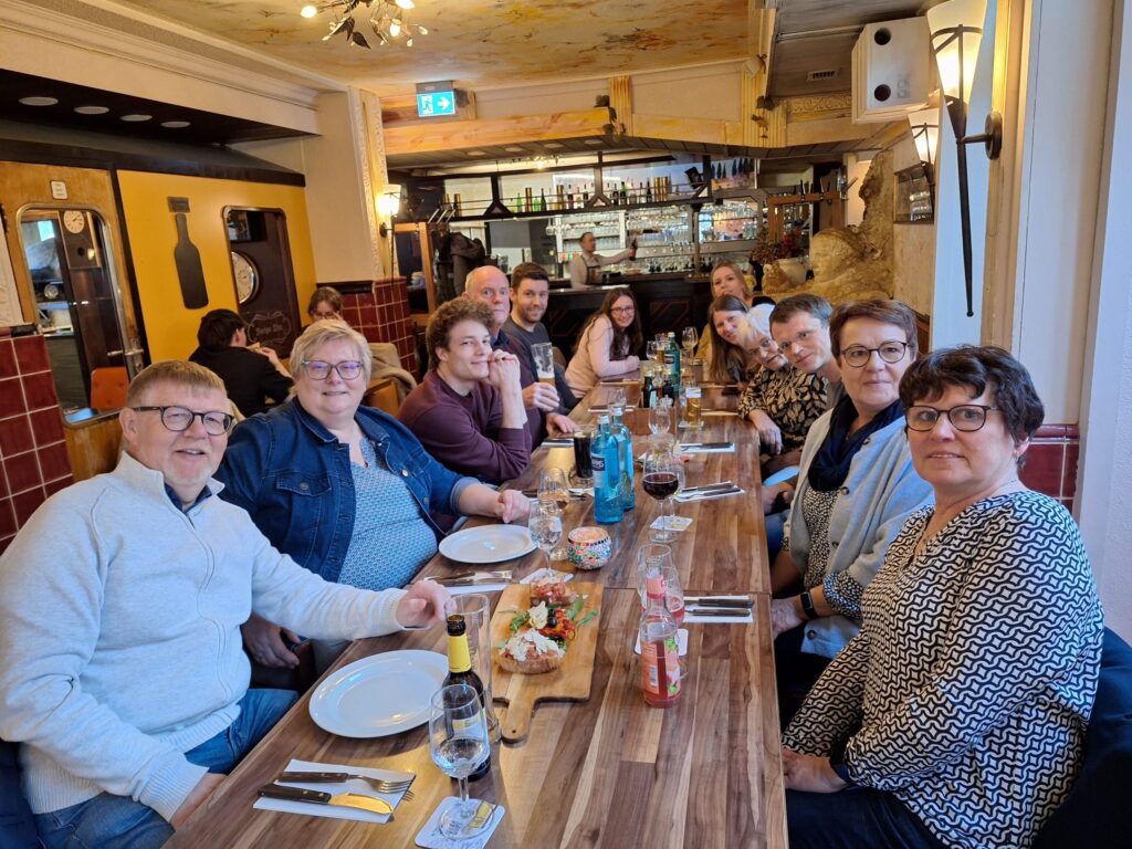 Am frühen Abend führte es alle Kleingruppen für ein gemeinsames Abendessen in ein italienisches Restaurant, bevor wir uns anschließend – wie es sich für einen Theaterverein gehört – im Contra-Kreis-Theater eine Theateraufführung ansahen. Die Komödie ‚Kalter weißer Mann‘ von Dietmar Jacobs und Moritz Netenjakob behandelt aktuelle, gesellschaftliche Themen rund ums Gendern, Sexismus und politische Korrektheit.